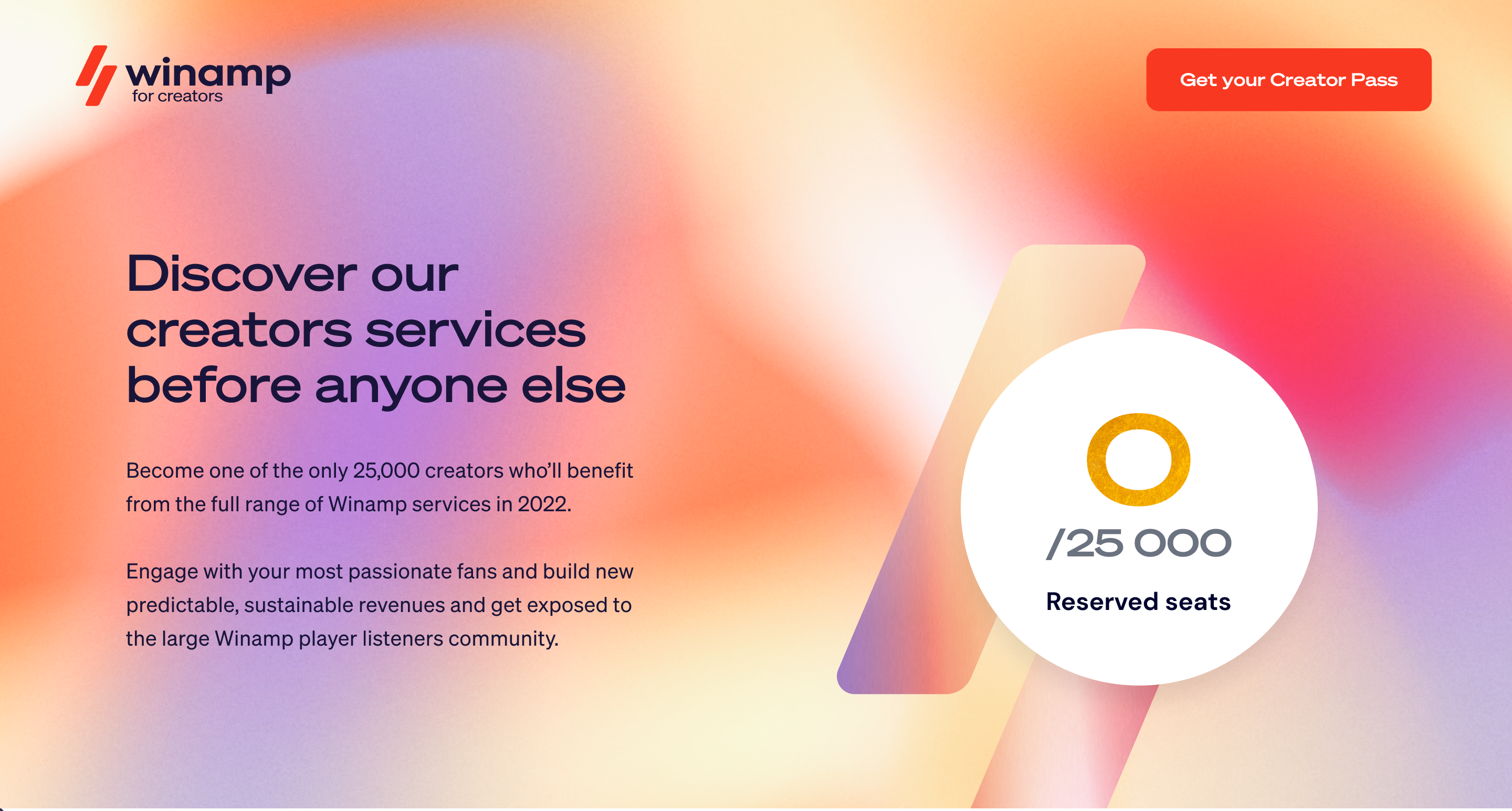 Creators can sign up to be one of the first 25,000 individuals to gain access to Winamp by visiting www.winamp.com/creatorpass/.